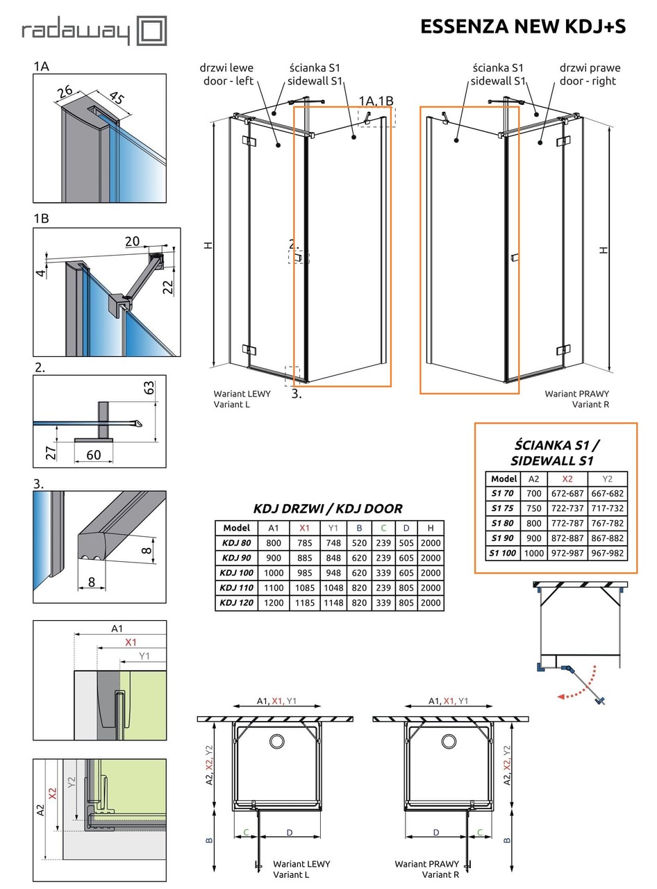 Бокова стінка Essenza New Black KDJ-Essenza New Black KDJ+S S1 90, RADAWAY