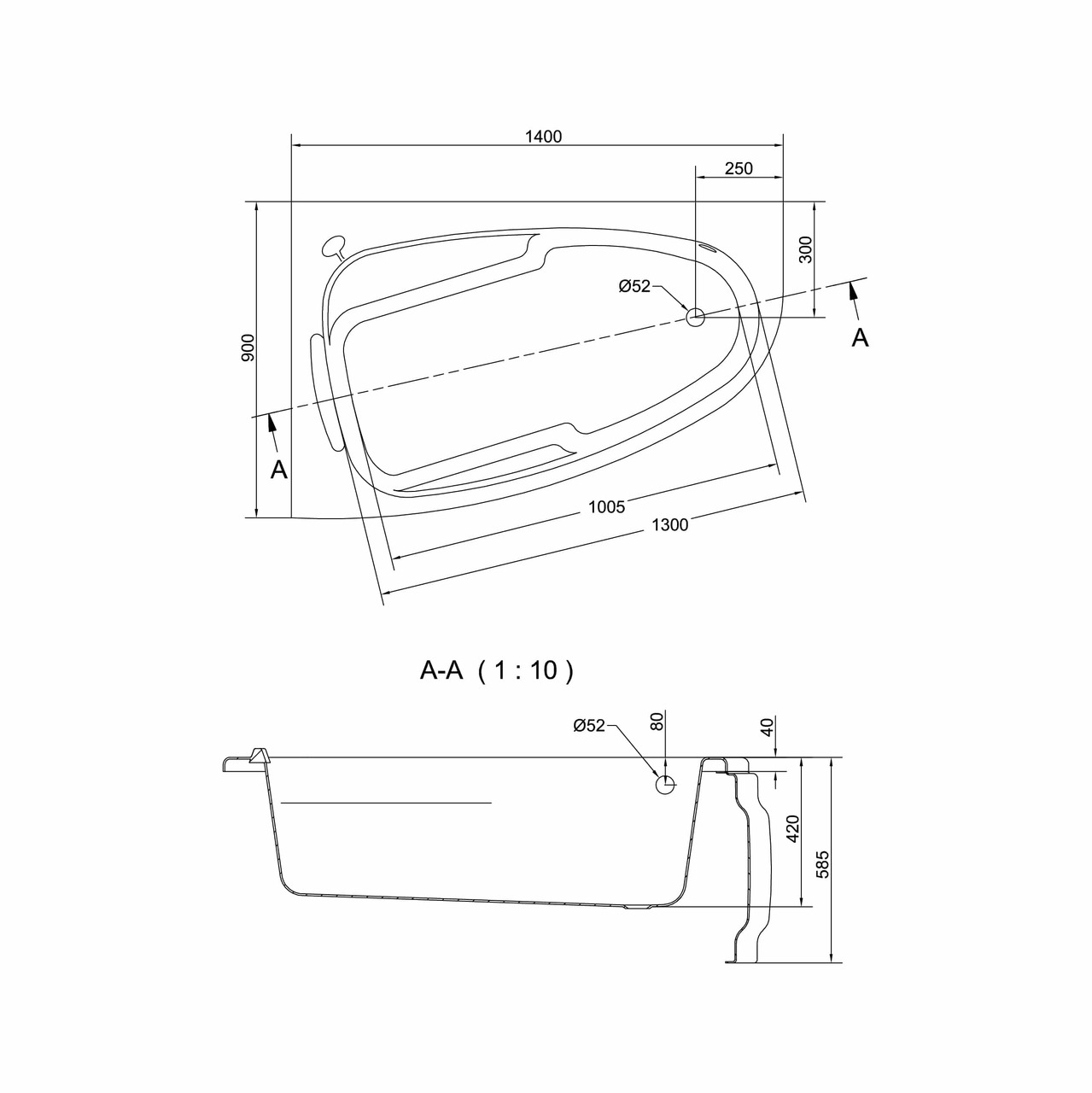Ванна асиметрична ліва Joanna 140×90, Cersanit