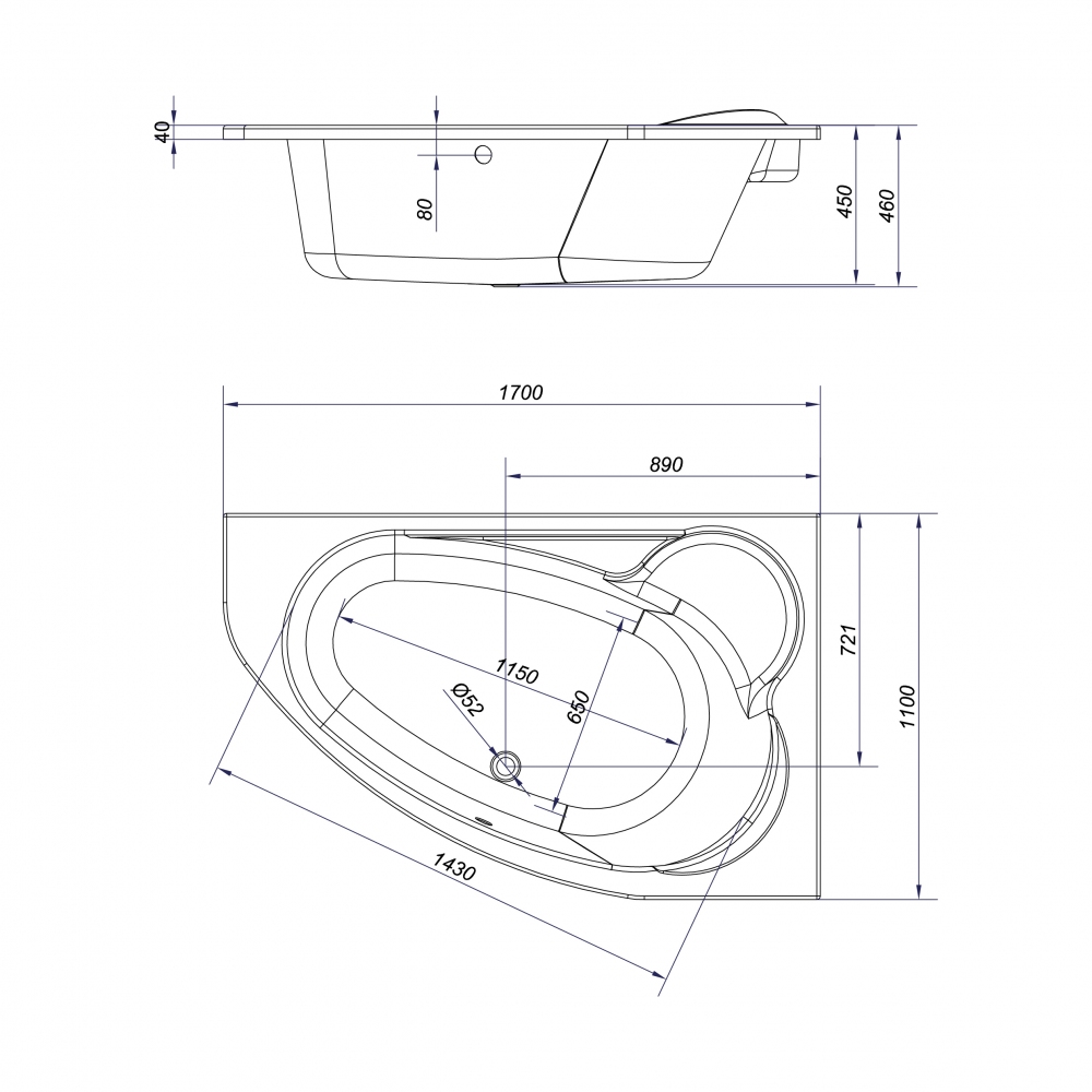 Немає в наявностіВанна KALIOPE 170х110 права з кріпленням