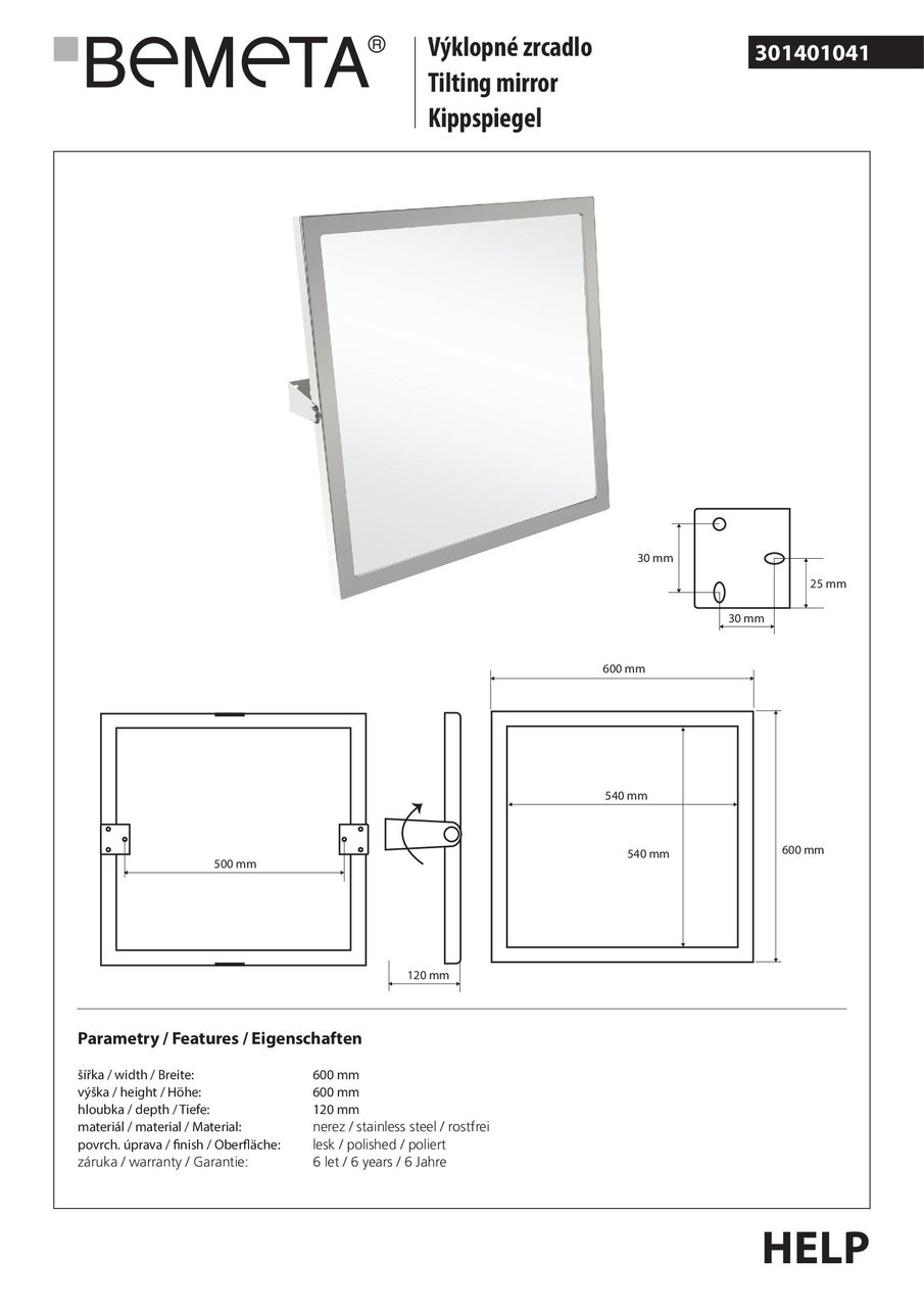 Немає в наявності301401041 HELP:дзеркало рухоме,нерж.полір. Bemeta Чехія