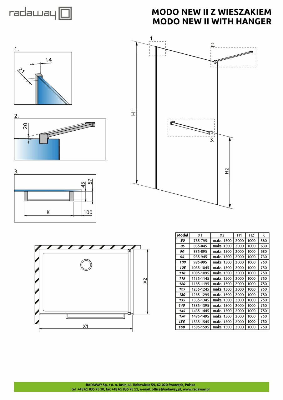 Душова стінка з рушникотримачем Modo New II 155 RADAWAY