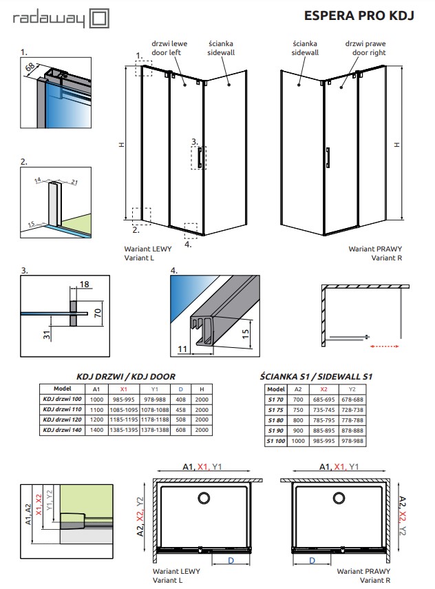 Душова стінка Espera Pro KDJ 490 права, RADAWAY
