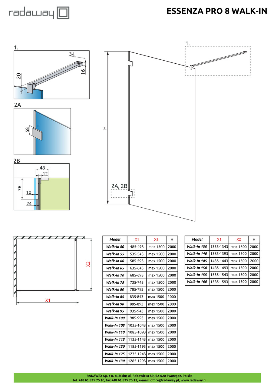 Душова стінка Essenza Pro 8 Gold Walk-in 130, RADAWAY