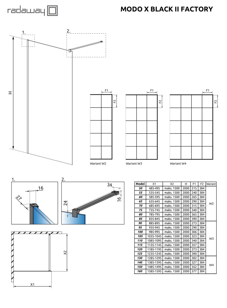 Душова стінка Modo X Black II 160 Factory RADAWAY