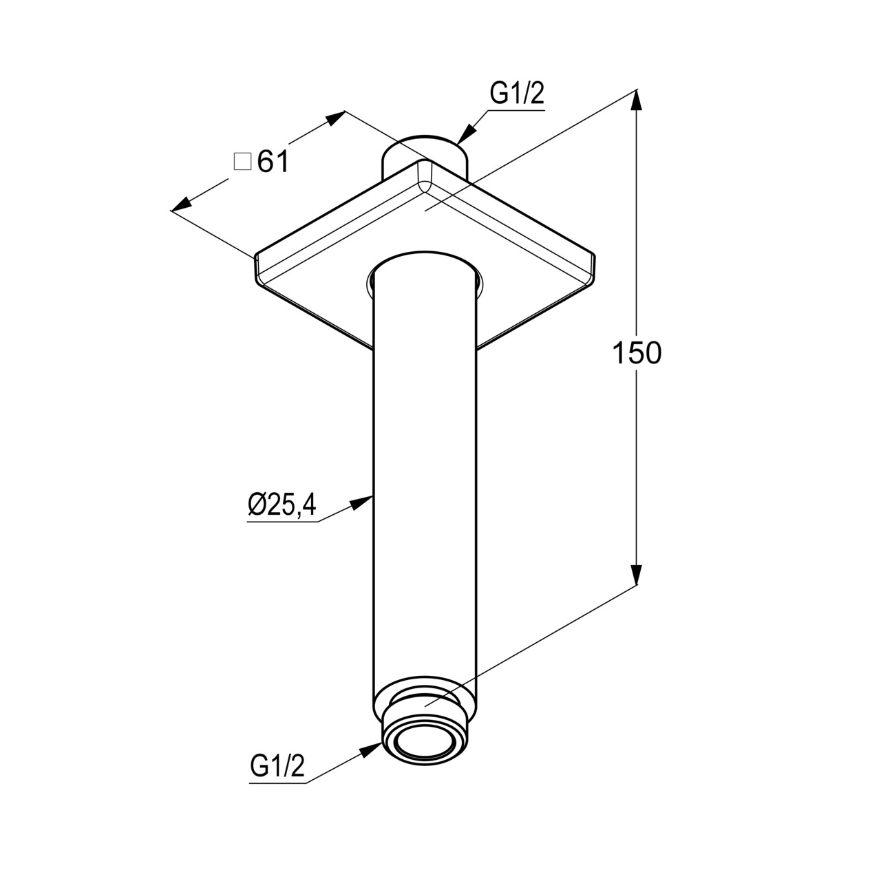 Кронштейн стельовий для верхнього душу A-QA 150мм (6653505-00) кругл/квадр хром