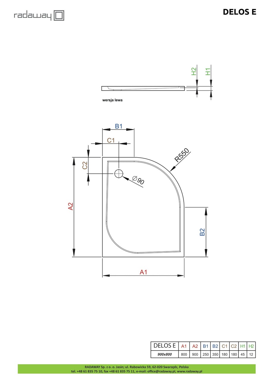 Душовий піддон Delos E 90×80 см правий, RADAWAY