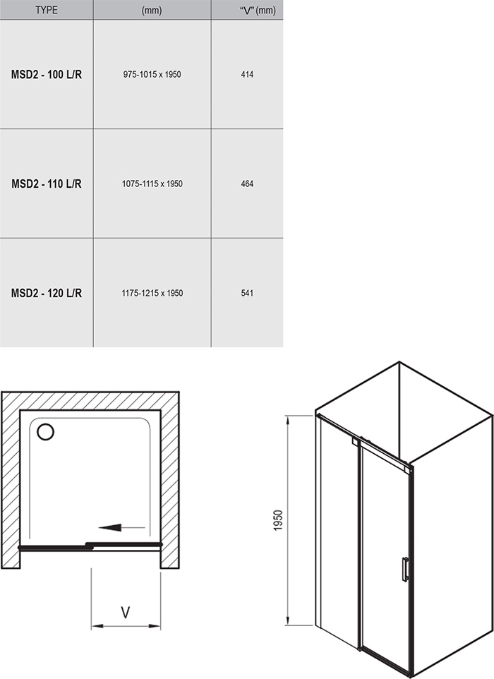 | Тип відчинення душу | Розсувний |