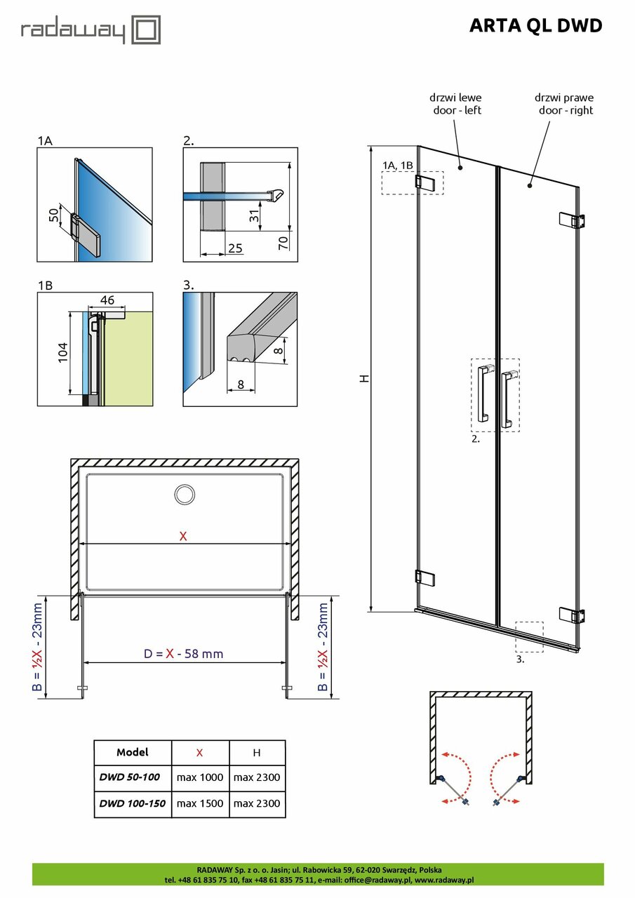 Душові двері Arta QL DWD 500-750Lx2000 хром/прозоре