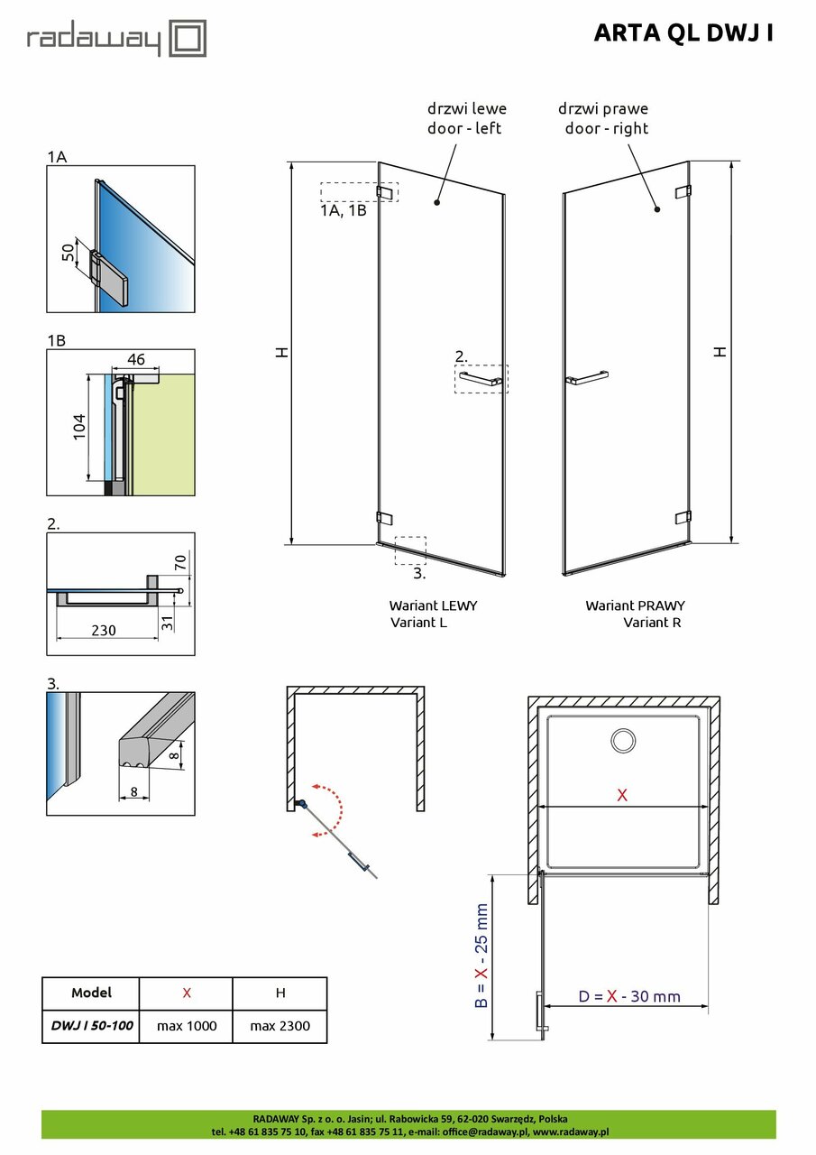 Душові двері Arta QL DWJ I 500-1000Lx2000 хром/прозоре