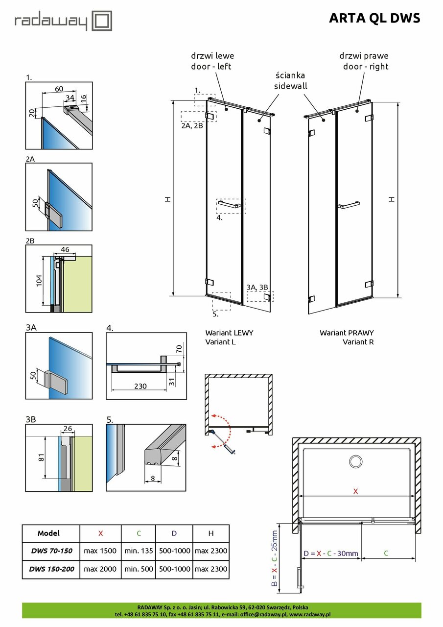 Душові двері Arta QL DWS 1000-1500Rx2000 хром/прозоре