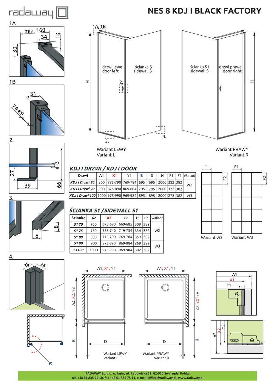 Душові двері NES 8 Black KDJ I 80 Factory праві RADAWAY