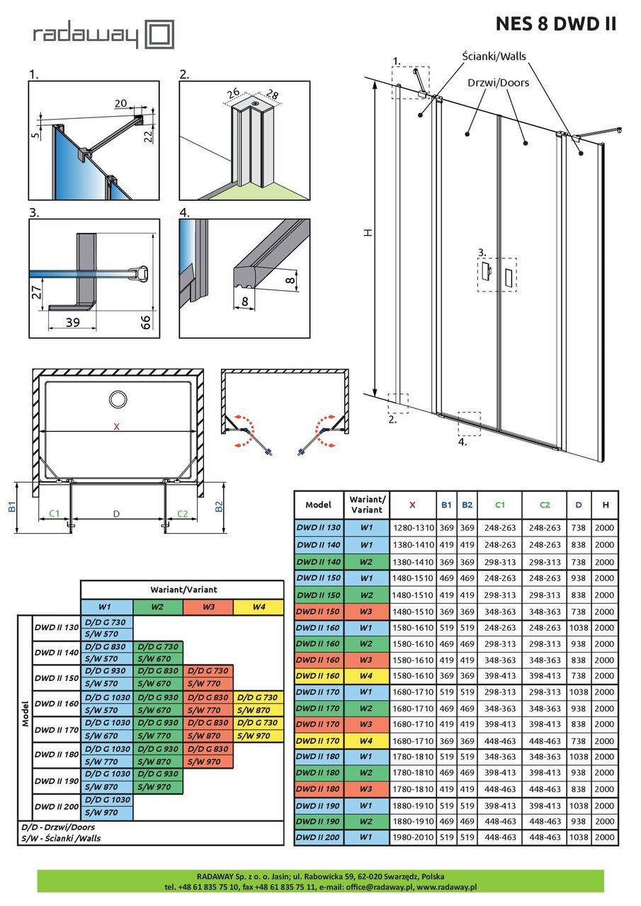 Душові двері NES 8 DWD II 830×2000 хром/прозоре