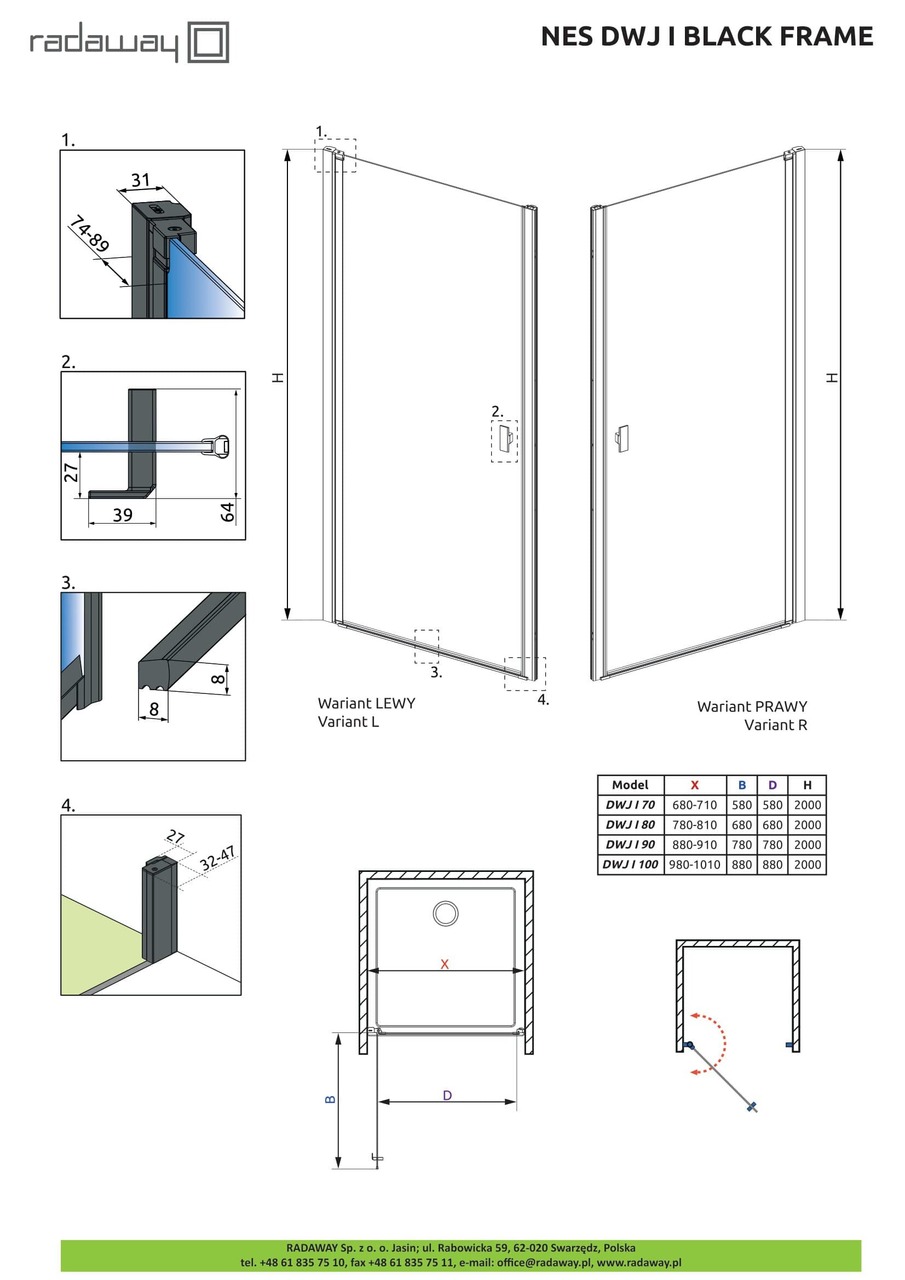 Душові двері NES Black DWJ I 90 Frame праві RADAWAY