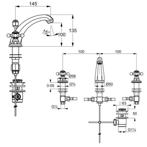 Змішувач Adlon для умивальника 510430520 на 3 отв., Kludi