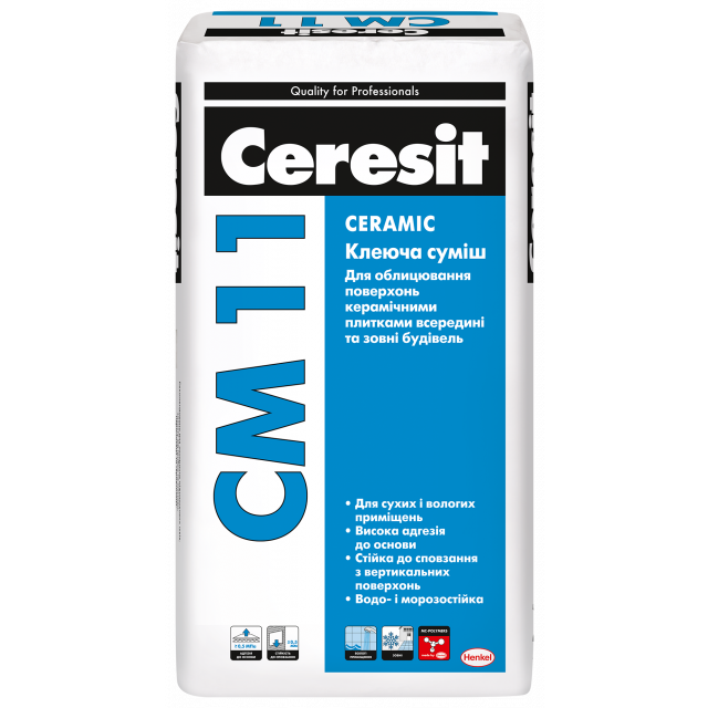 Клеюча суміш для облицювання поверхонь керамічними плитками всередині та зовні будівель Ceresit CM -11 УКРАЇНА
