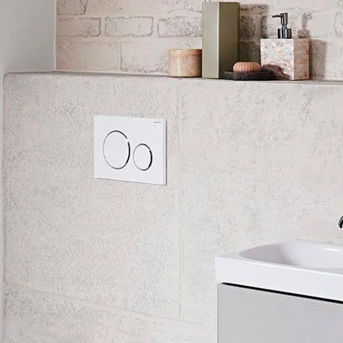 Комплектація: кнопка для змиву води, комплект кріплень, кріпильні елементи для капітальної стіни