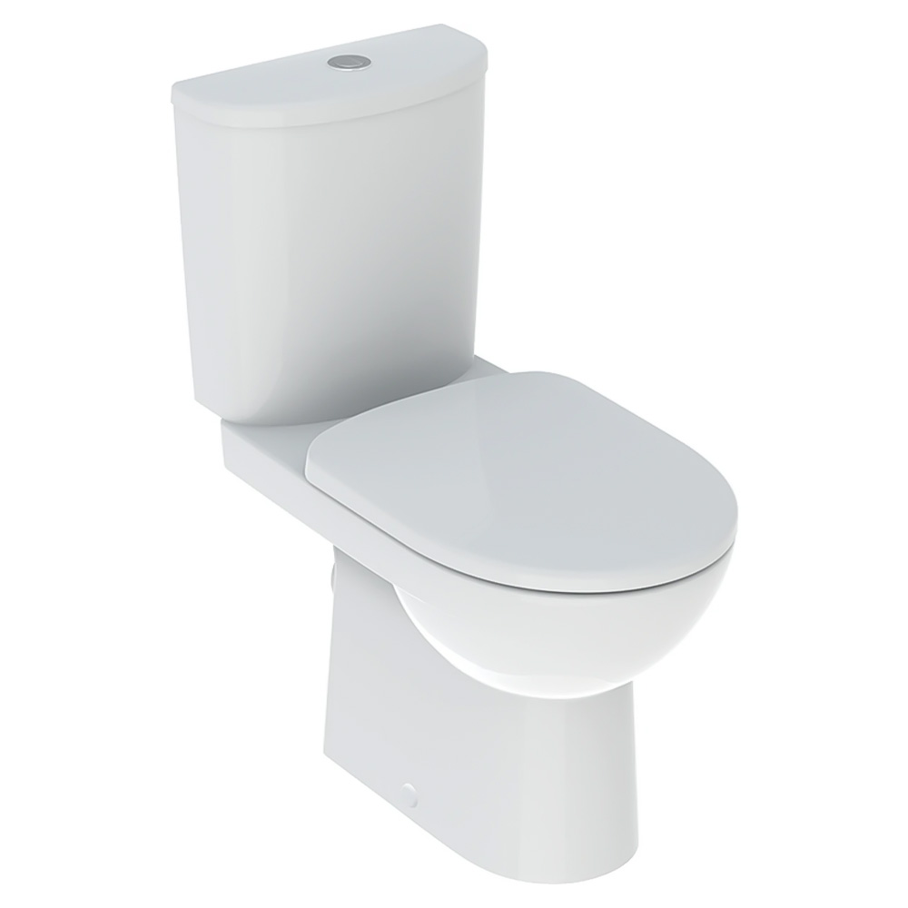 501.753.00.1 Selnova Комплект підлогового унітаза зі змивним бачком, горизонтальний випуск, напівзакрита форма, Rimfree, із сидінням з кришкою Duroplast: Білий (1 сорт)