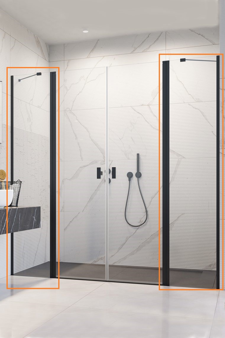 Бокова стінка до дверей Nes Black DWD II 770×2000 чорний/прозоре Radaway