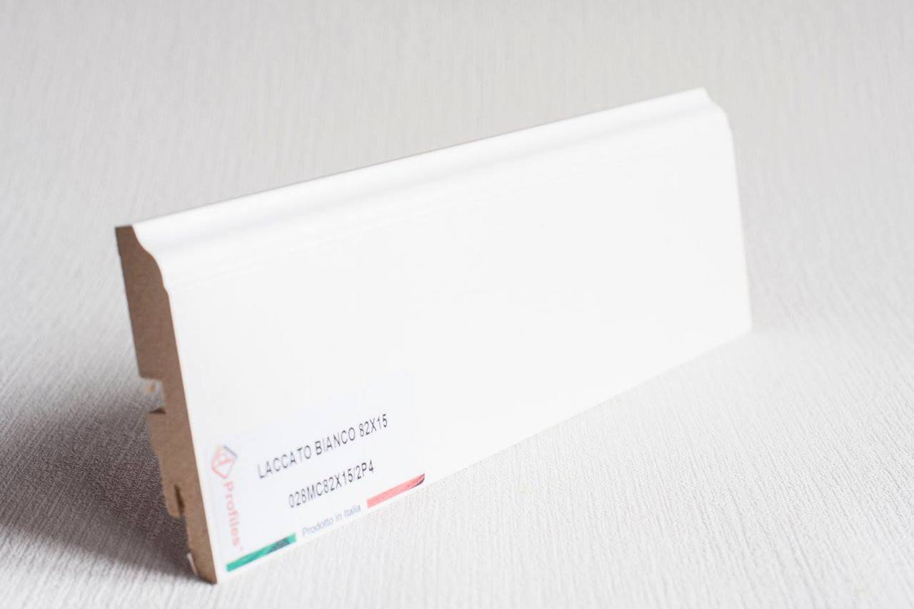Плінтус 82x15x2400 з МДФ, з ефектом пор дерева БІЛИЙ (RAL 9003), Lucciano, Італія