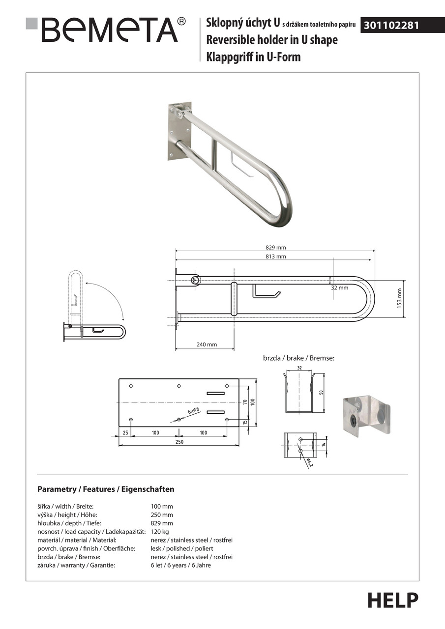 Немає в наявності301102281 HELP поручень U-подібний 813mm, нерж.полірована Bemeta Чехія