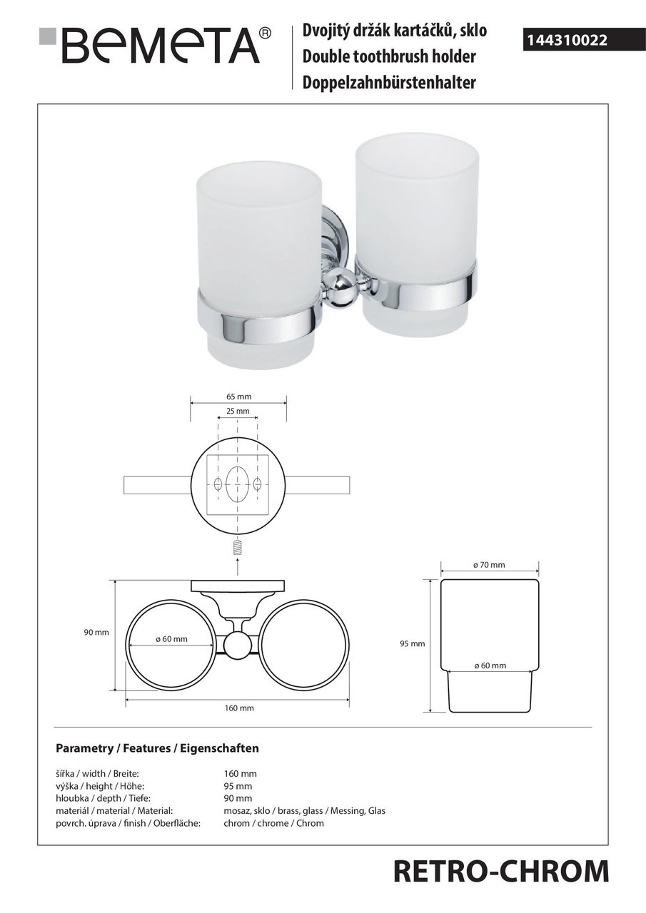 144310022 Retro тримач стаканів подвійний+стакани,хром Bemeta