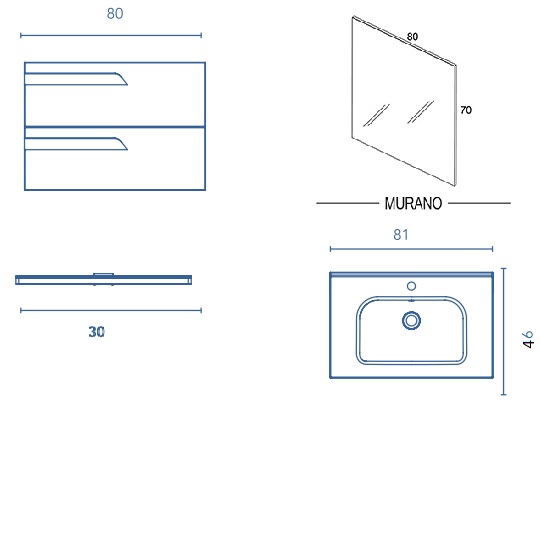 С0072387 Vitale 80 Комплект: 125624 тумба під раковину 80 см+1126224 раковина 80 см+121517 дзеркало+123395 LED підсвітка, темно-сіра (1 сорт)