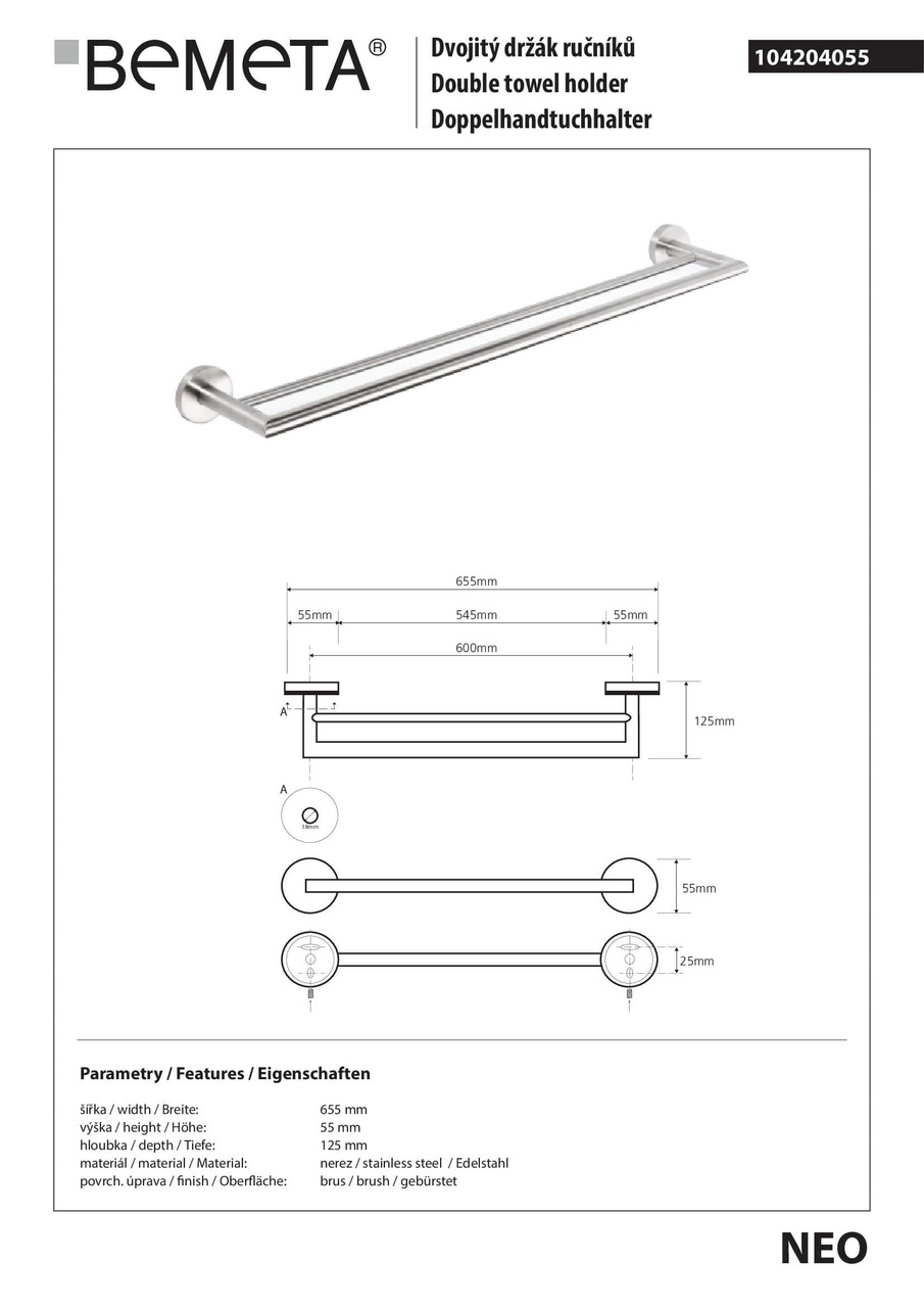 Тримач рушників подвійний 104204055 NEO Bemeta Чехія