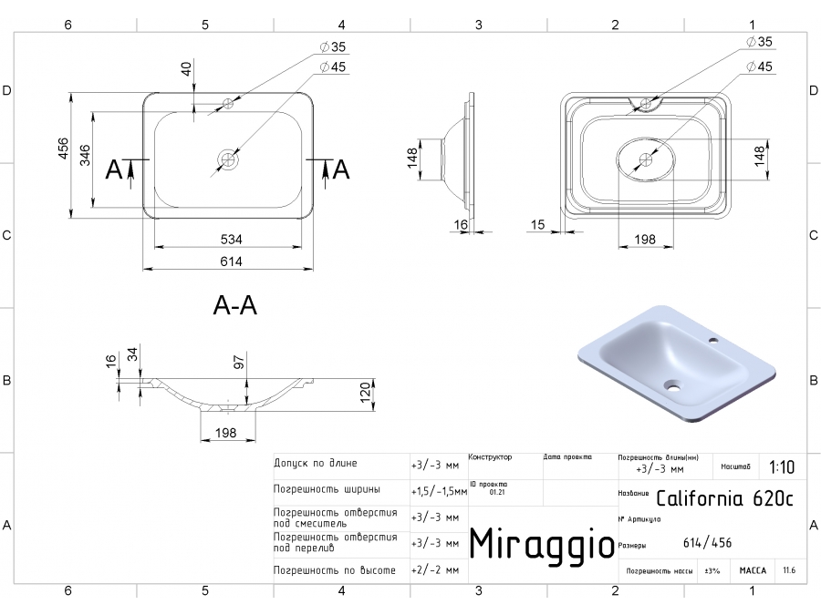 Умивальник CALIFORNIA MIRAGGIO