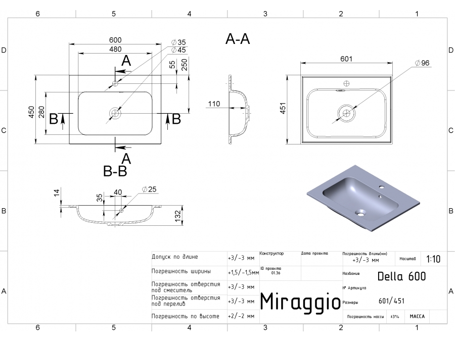 Умивальник Della 600
