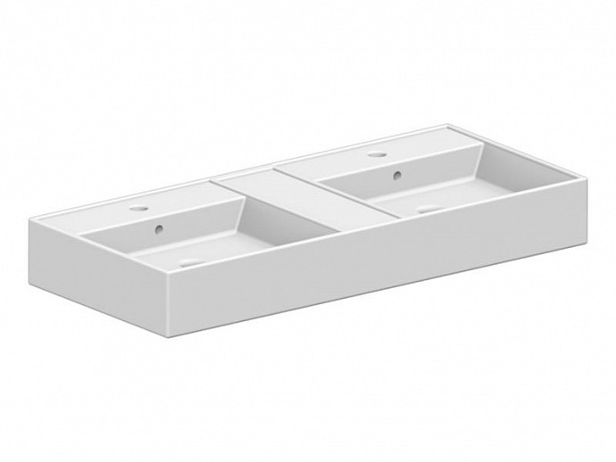 8035 Раковина накладна або підвісна Teorema 105R подвійна 2 отвори для змішувачів білий глянець Scarabeo