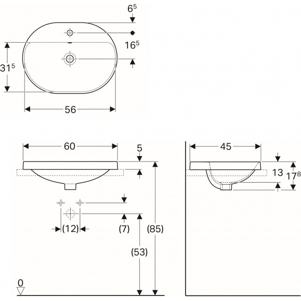 Немає в наявності500.733.01.2 Вбудований умивальник Geberit VariForm еліптичної форми, 45х60см, з полицею для отвори, з перелив., глазуров. / білий