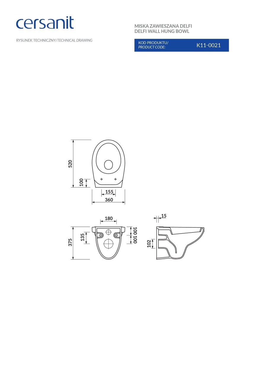 Унітаз Delfi підвісний Cersanit