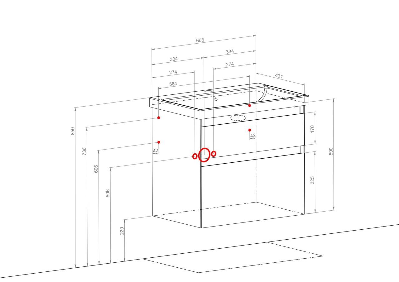 Шафка з умивальником консольна Еліт 70, Аква Родос