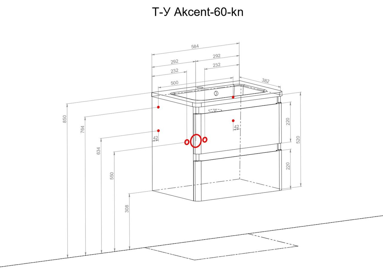 Шафка з умивальником підвісна Акцент Альфа 60, Аква Родос