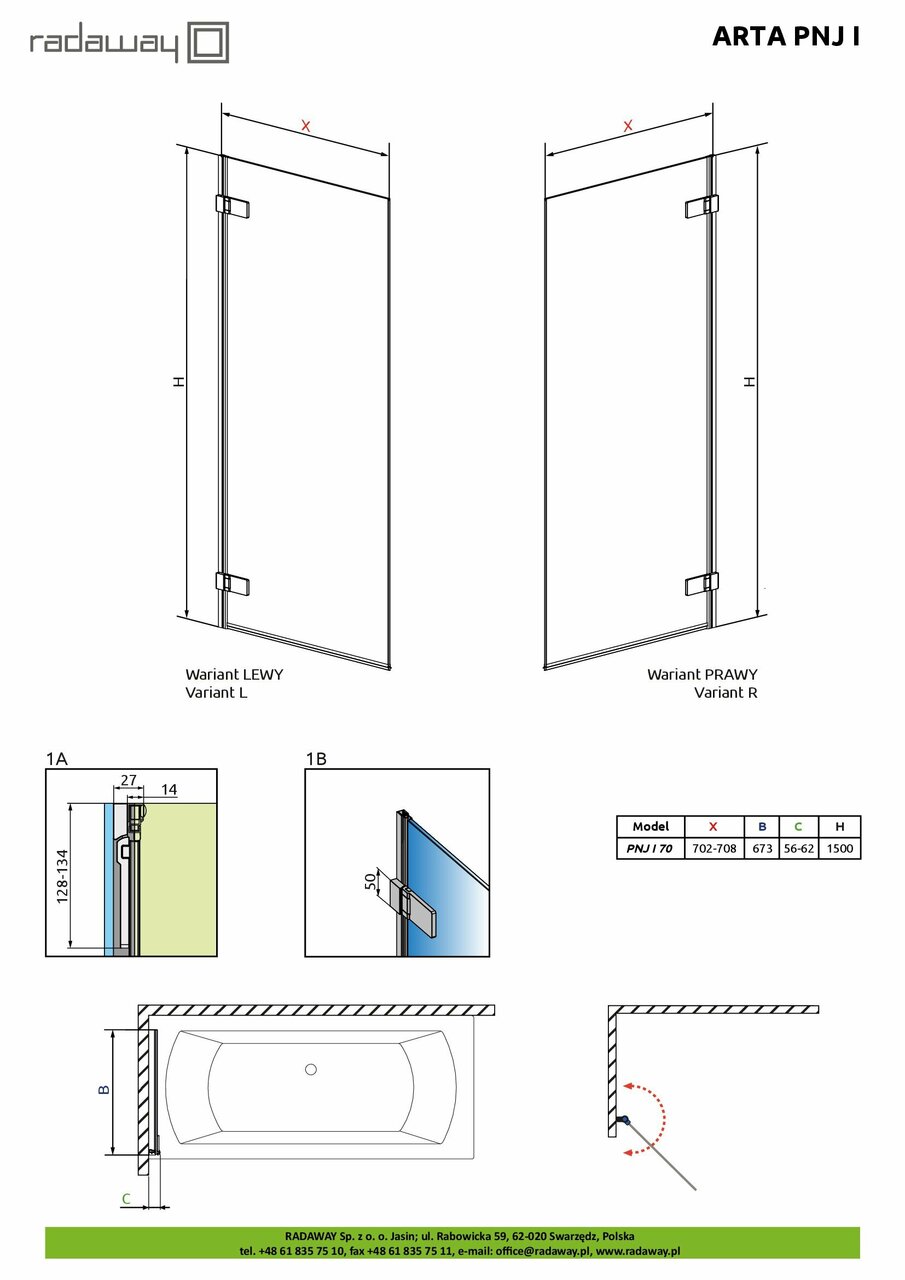 Немає в наявностіШторка Arta PNJ 70L хром+/прозоре 700×1500