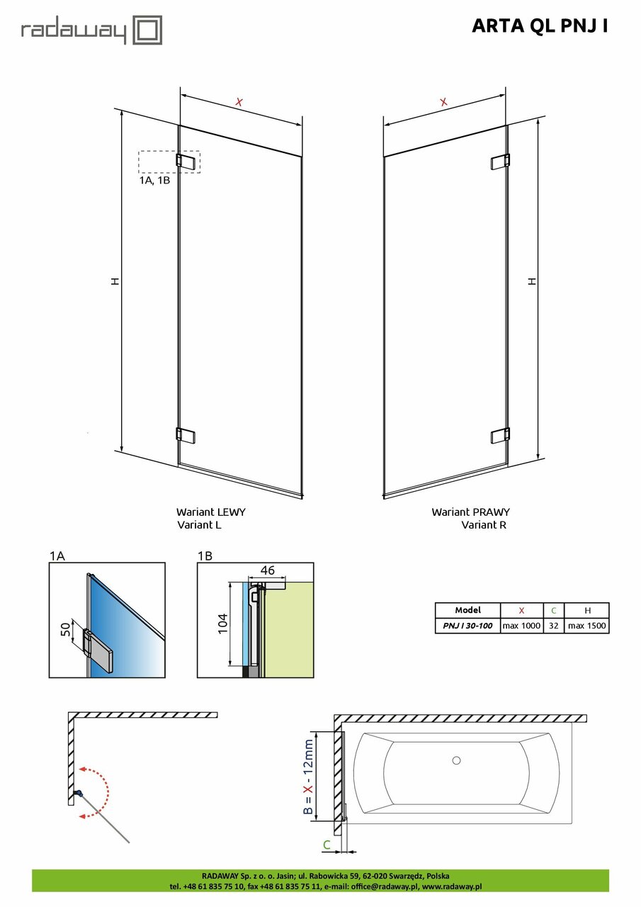 Шторка для ванни Arta QL PNJ I 30-100 R RADAWAY