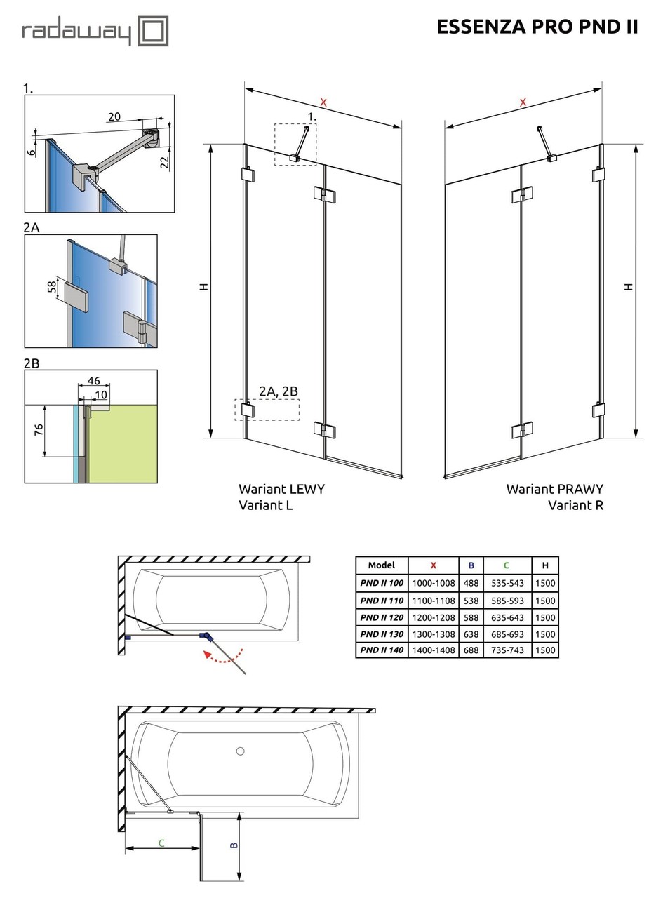 Шторка для ванни Essenza Pro White PND II 120 права, RADAWAY