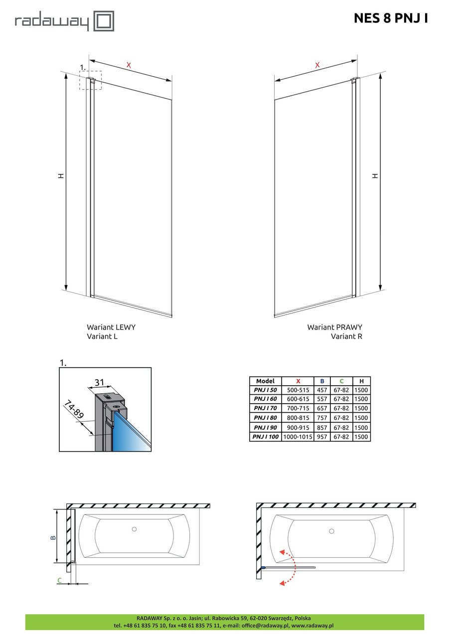 Шторка на ванну Nes 8 PNJ I 900Rx1500 хром/прозоре