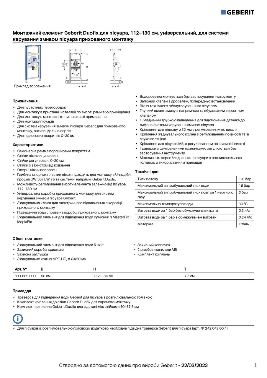 Інсталяція для пісуара універсальна Duofix 111.689.00.1 Geberit