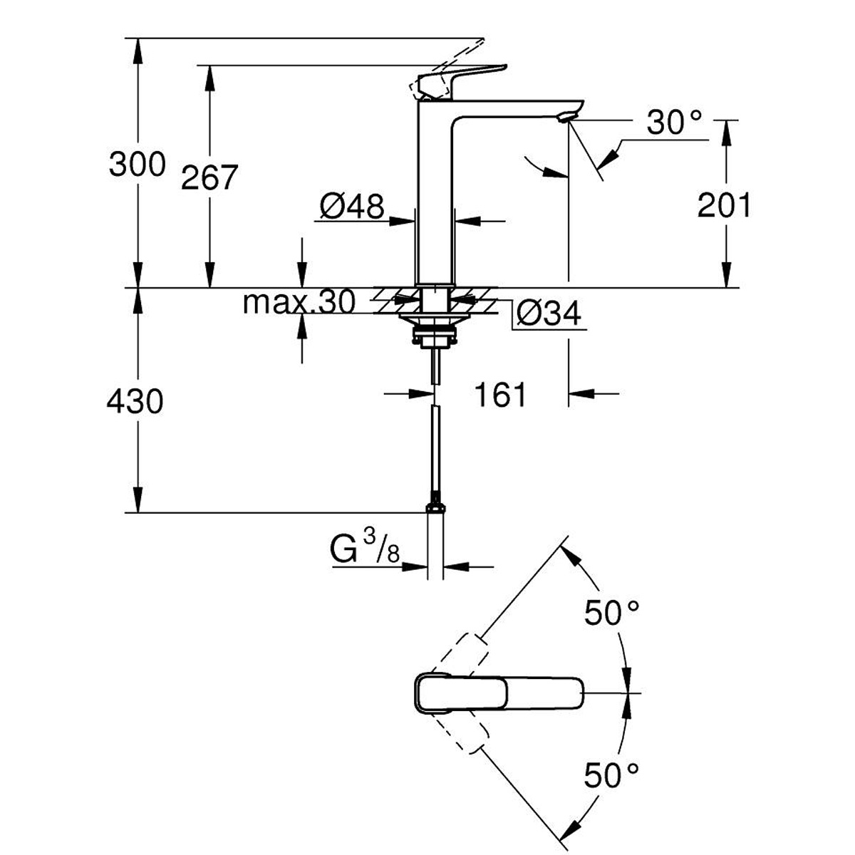 1017292430 Cubeo Змішувач одноважільний для раковини XL-розміру, чорний матовий (1 сорт)