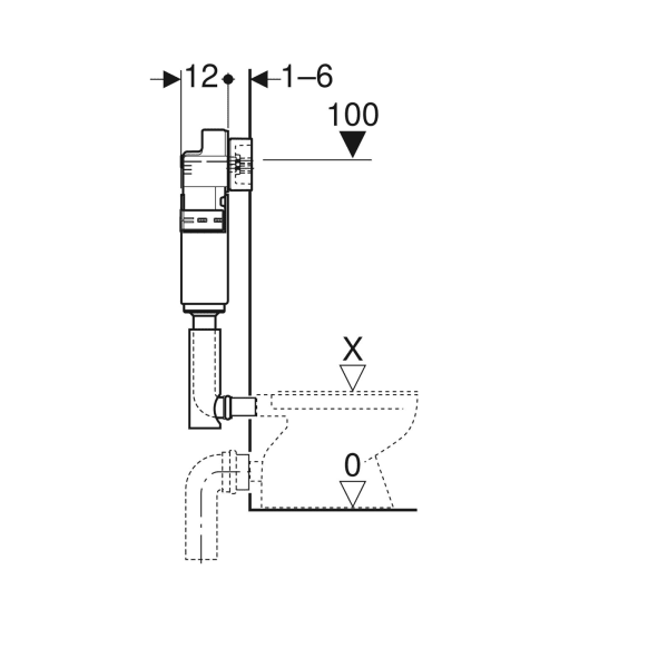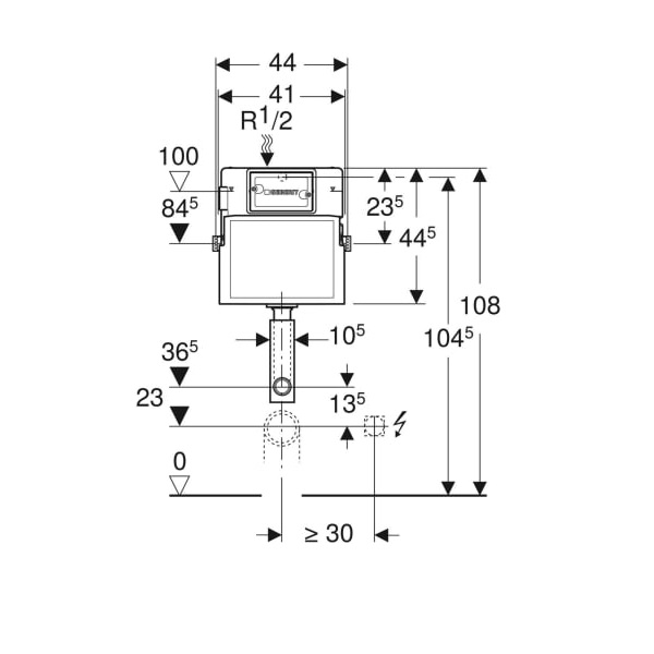 d 50/44 мм, бачок, елементи кріплення, захисна заглушка, коліно змиву 23 x 23 см, коробка монтажна для вікна обслуговування, кутовий запірний вентиль R 1/2 з кільцем-адаптером, сумісний з MeplaFix