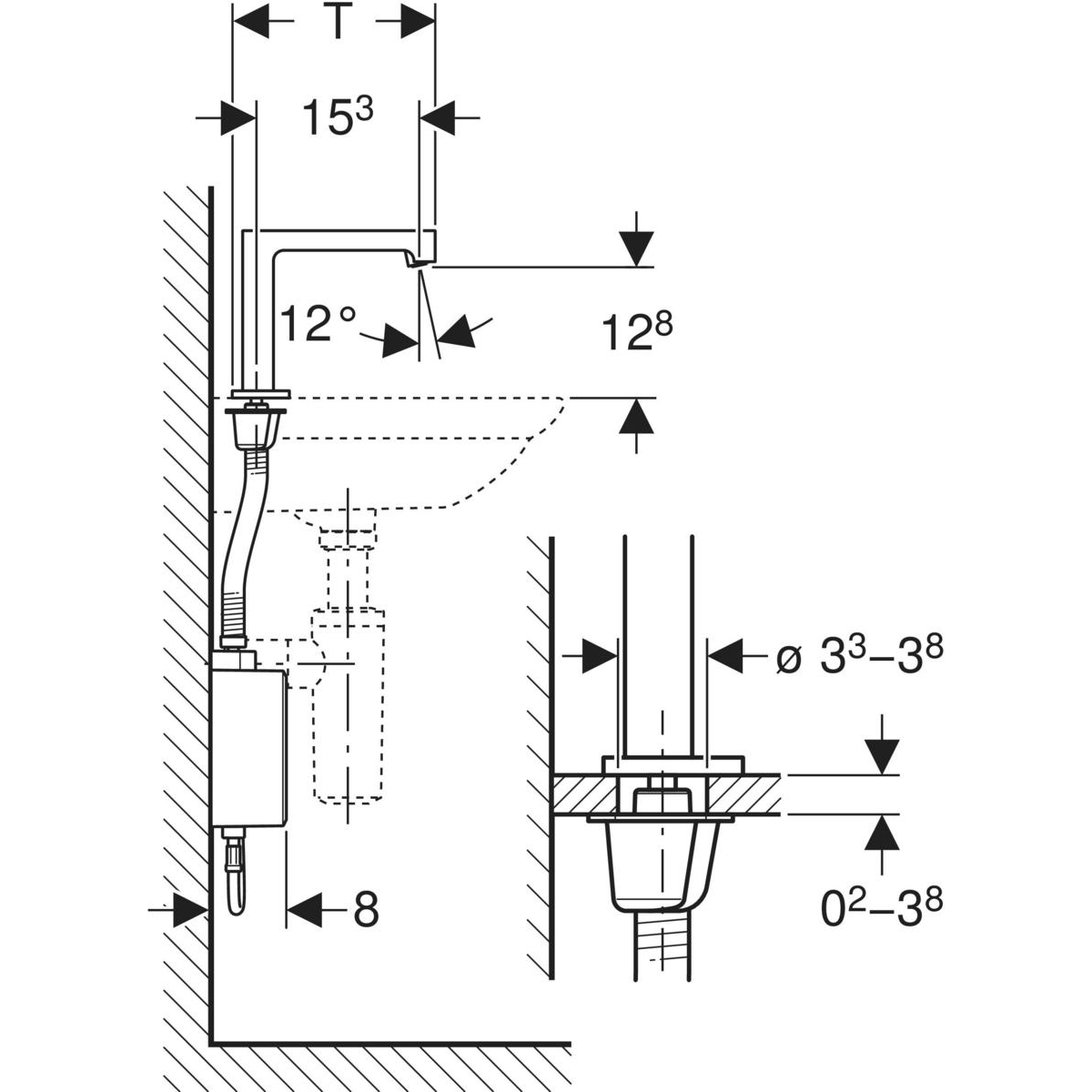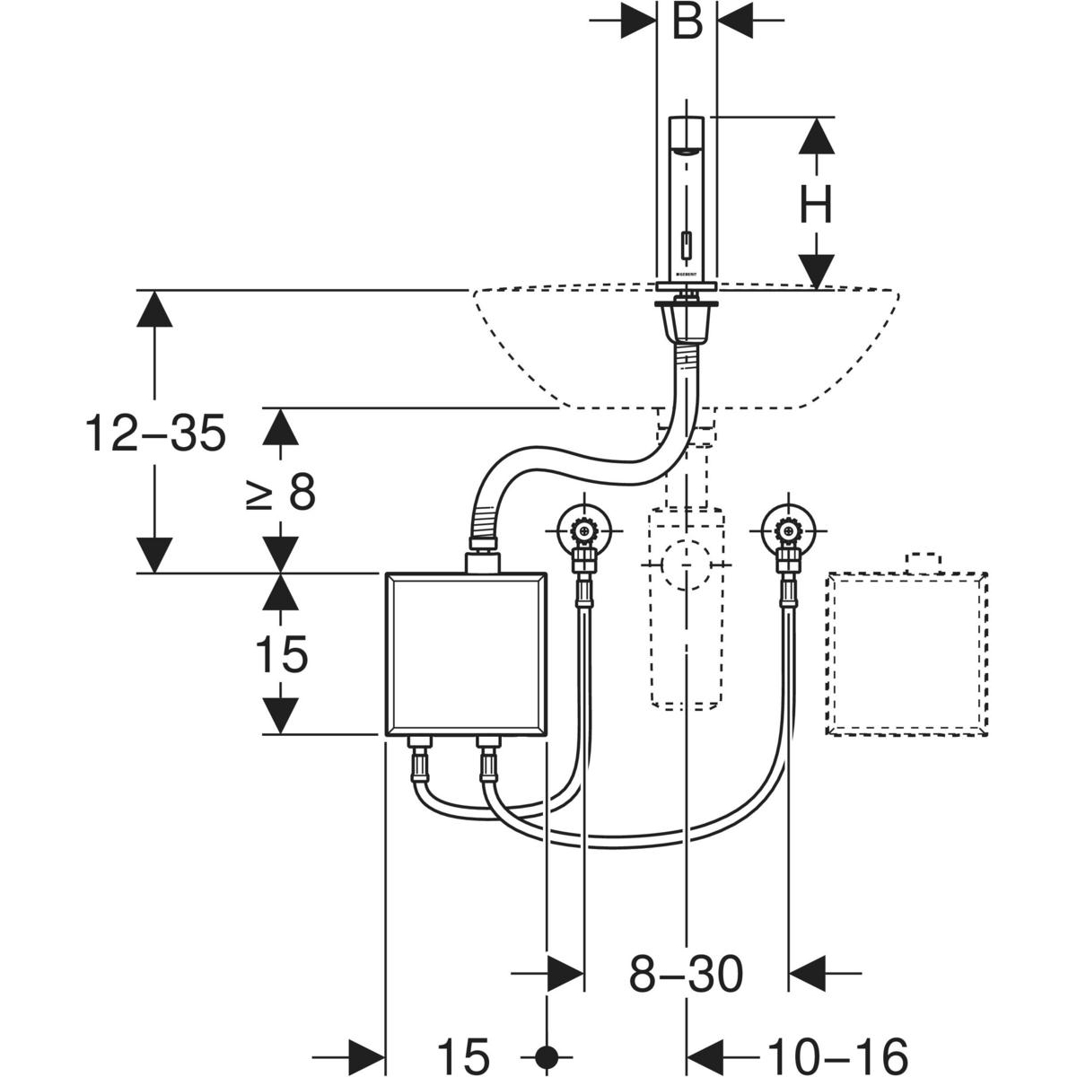 116.178.21.1 Brenta Змішувач для умивальника Geberit Brenta, вертикальний монтаж, живлення від батарей, з функціональним блоку зовнішнього монтажу: Змішувач=зі змішувачем та термостатом, глянцевий хром (1 сорт)