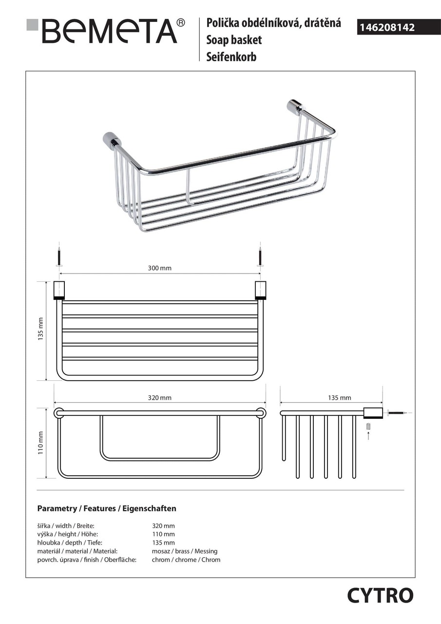 146208142 Cytro Мильниця 300 мм хром Bemeta