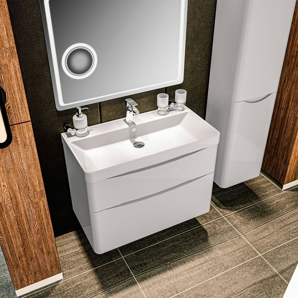 14850 тумба Амеріна 75 см (консольна) – з раковиною DEEP 750мм, біла (1 сорт)