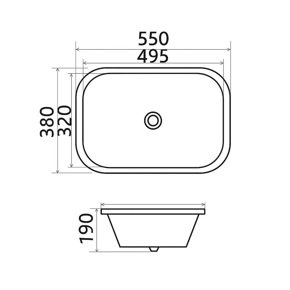 1610133 QUADRA Раковина під стільницю 550х380х190мм, біла (1 сорт)