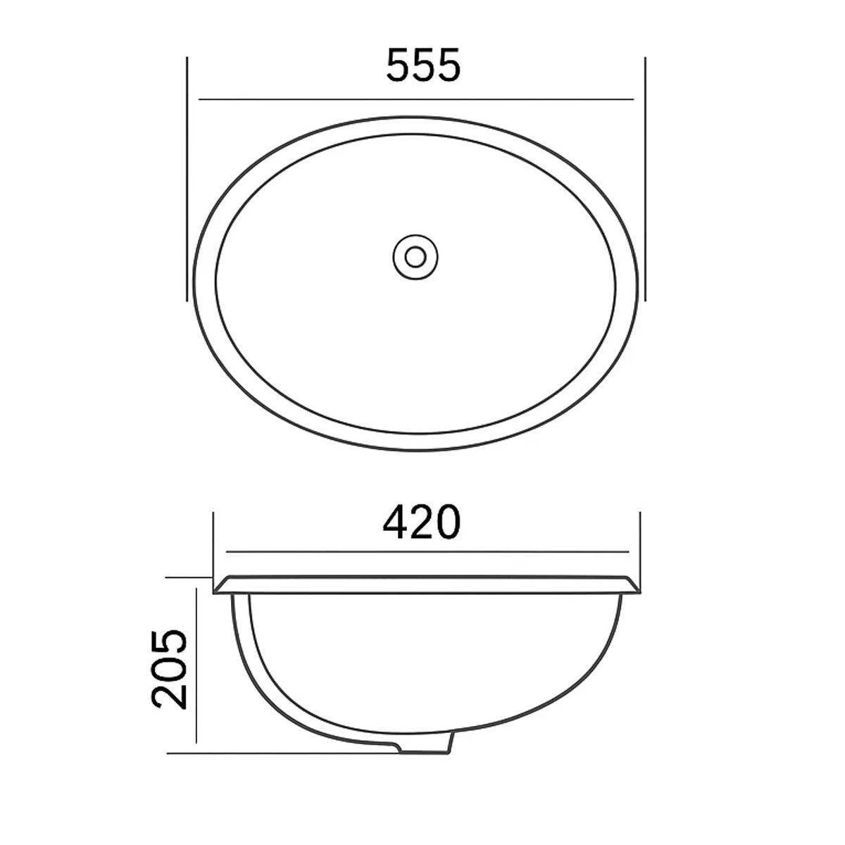 1611137 OVALE Раковина під стільницю 555х420х205, білий (1 сорт)