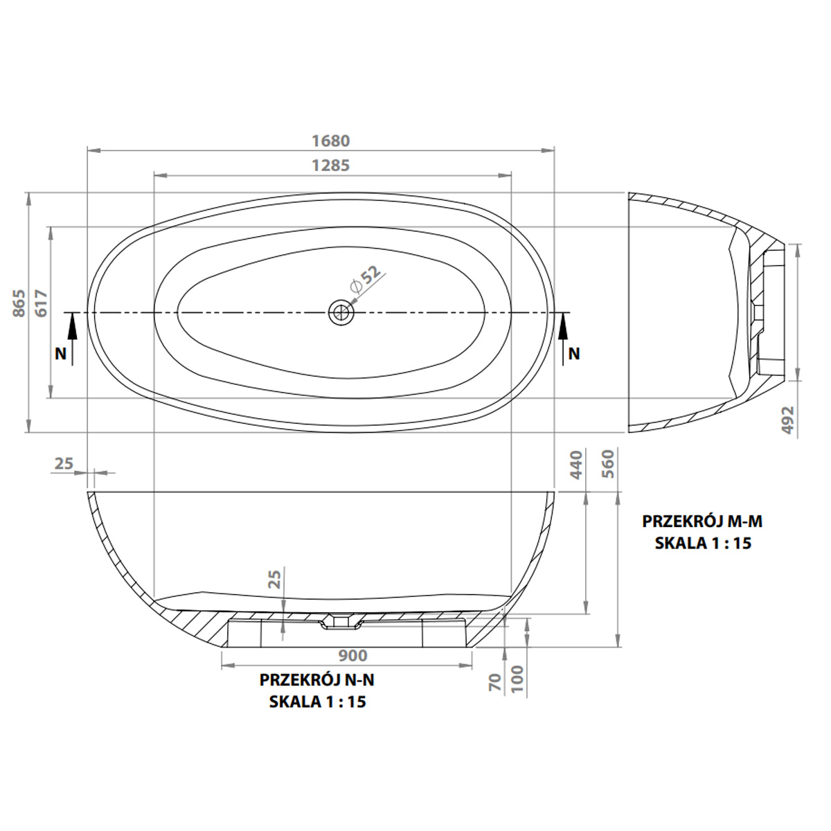 168.086.044.1-4.0.3.0.1 Ванна LACERTA окремостояча, біла, штучний камінь, 1680X865 (1 сорт)