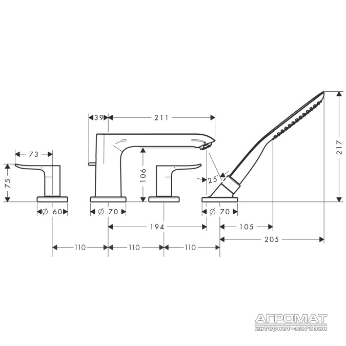 31442000 Metris Зовнішня частина змішувача 4-отв. д/ванни (1 сорт)
