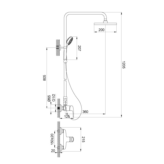 верхній душ, душовий шланг, змішувач для раковини, ручний душ, тримач, штанга