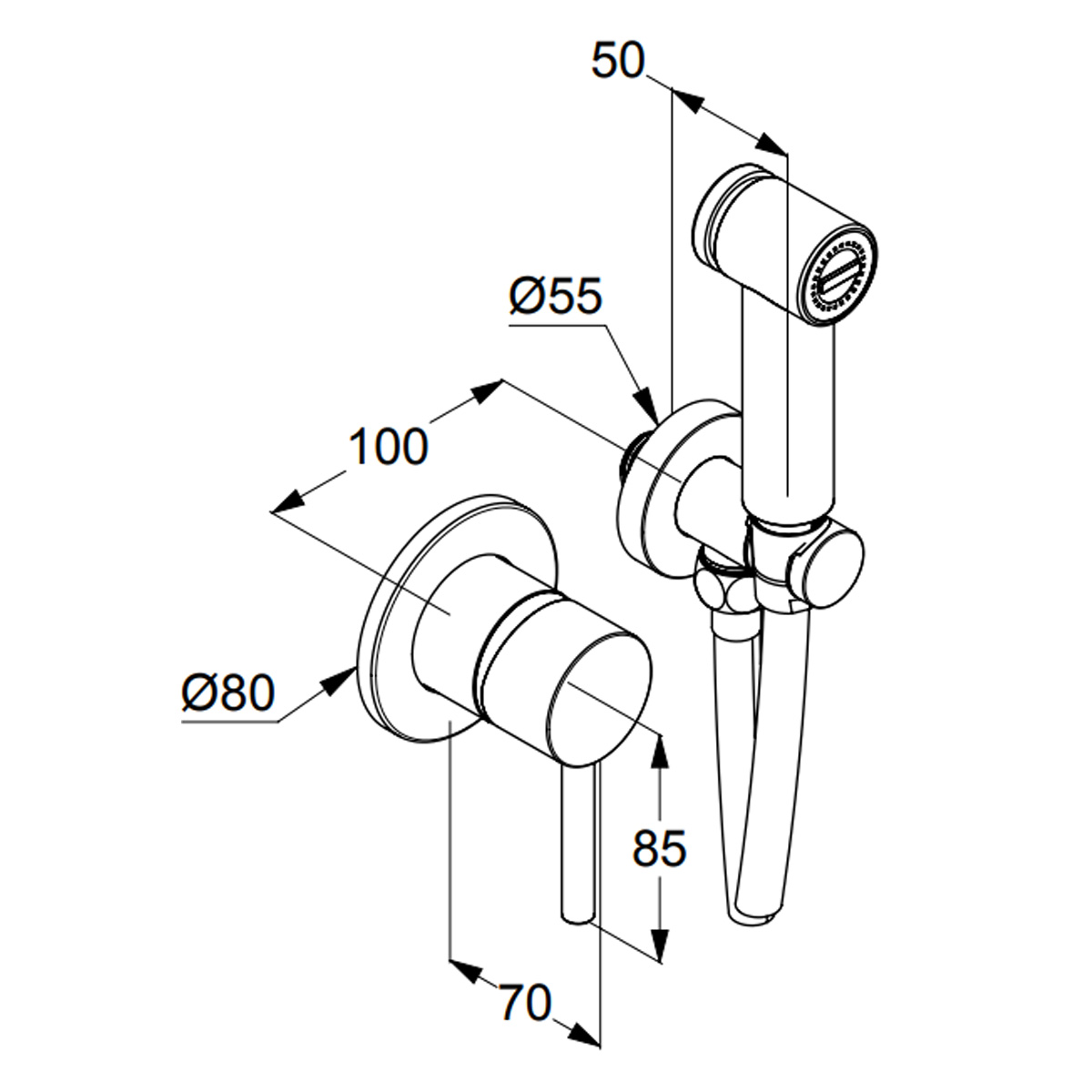 Комплектація: тримач, змішувач, змішувач для раковини, підключення для душового шлангу, душовий шланг, гігієнічний душ